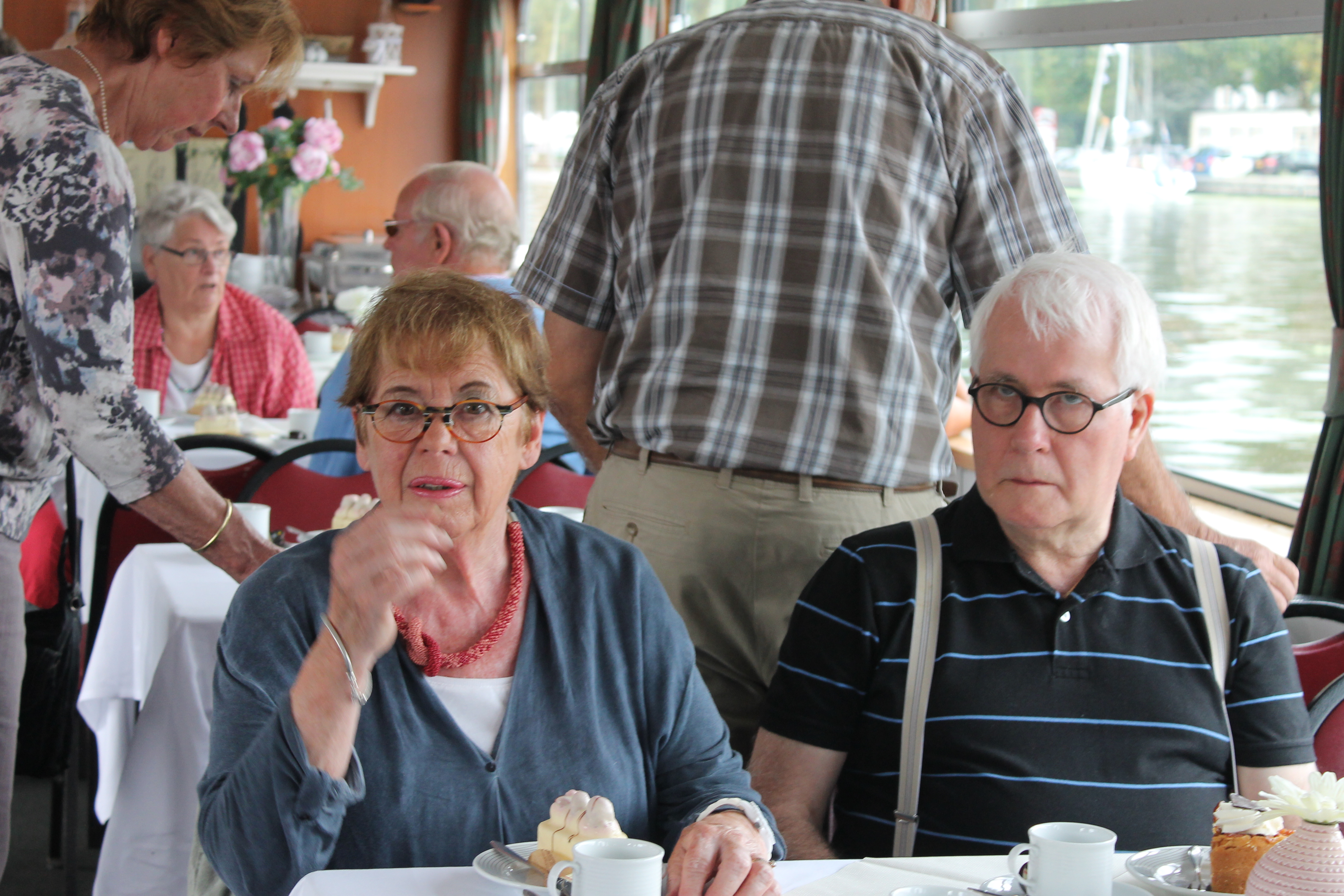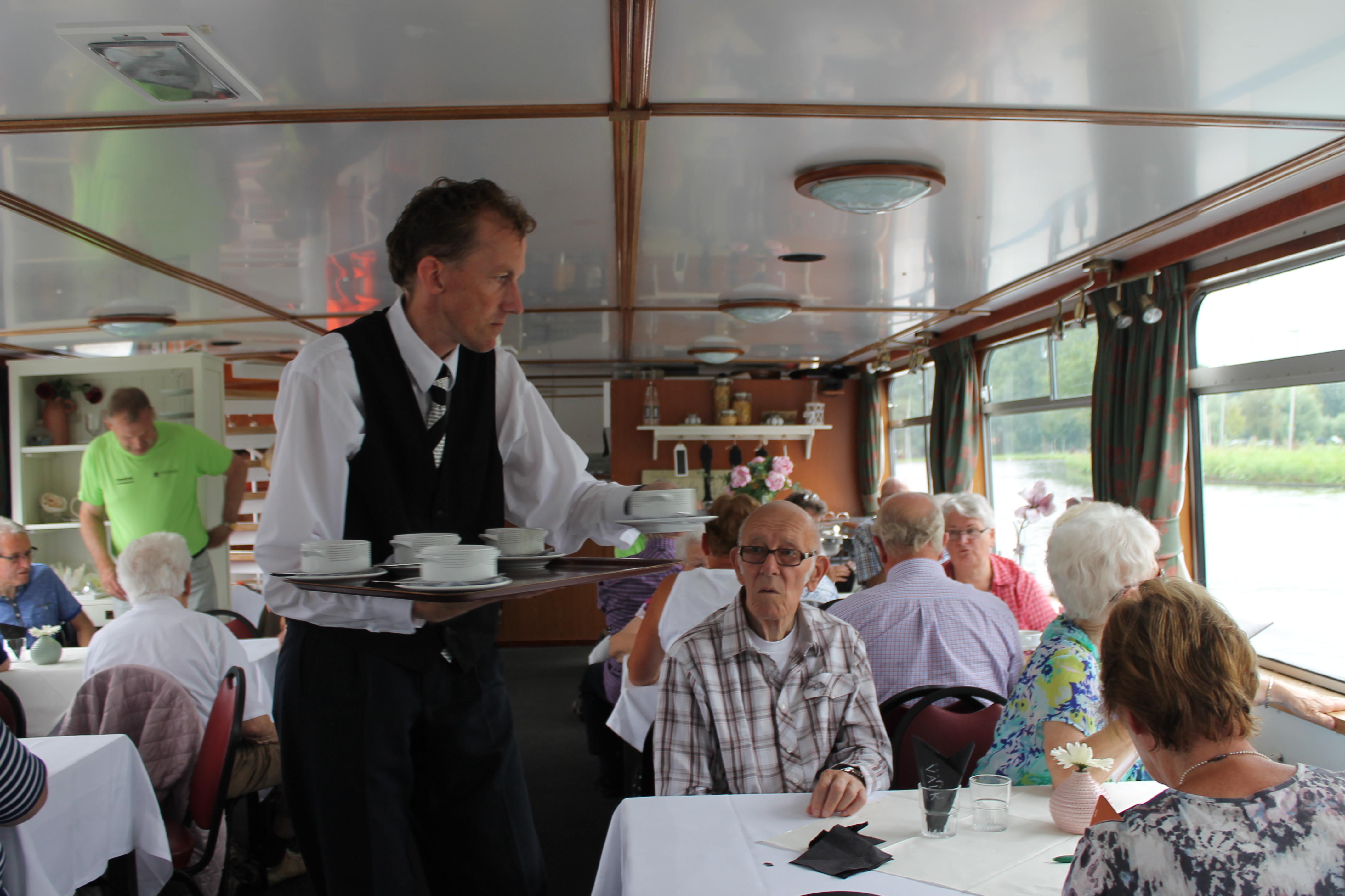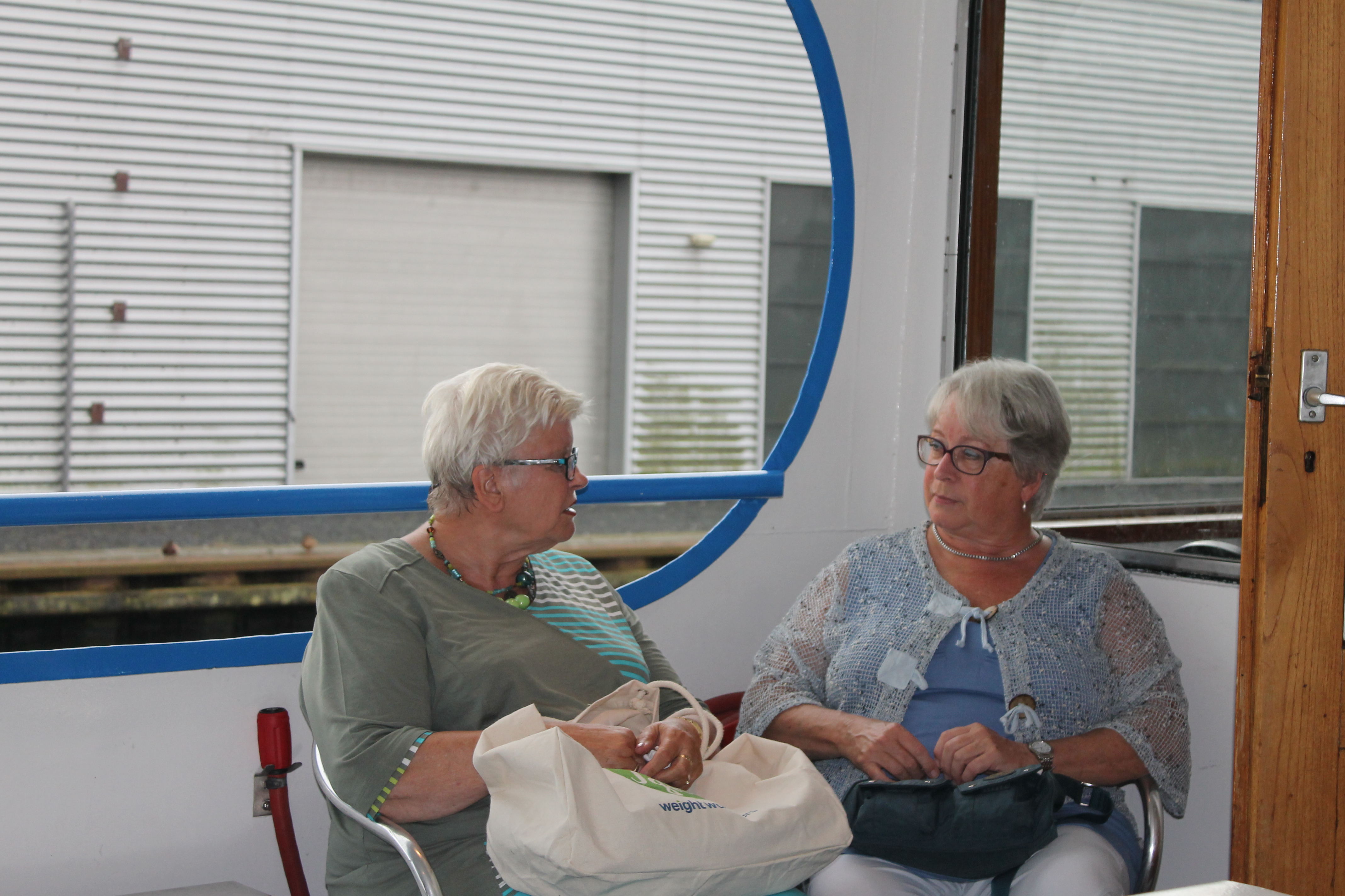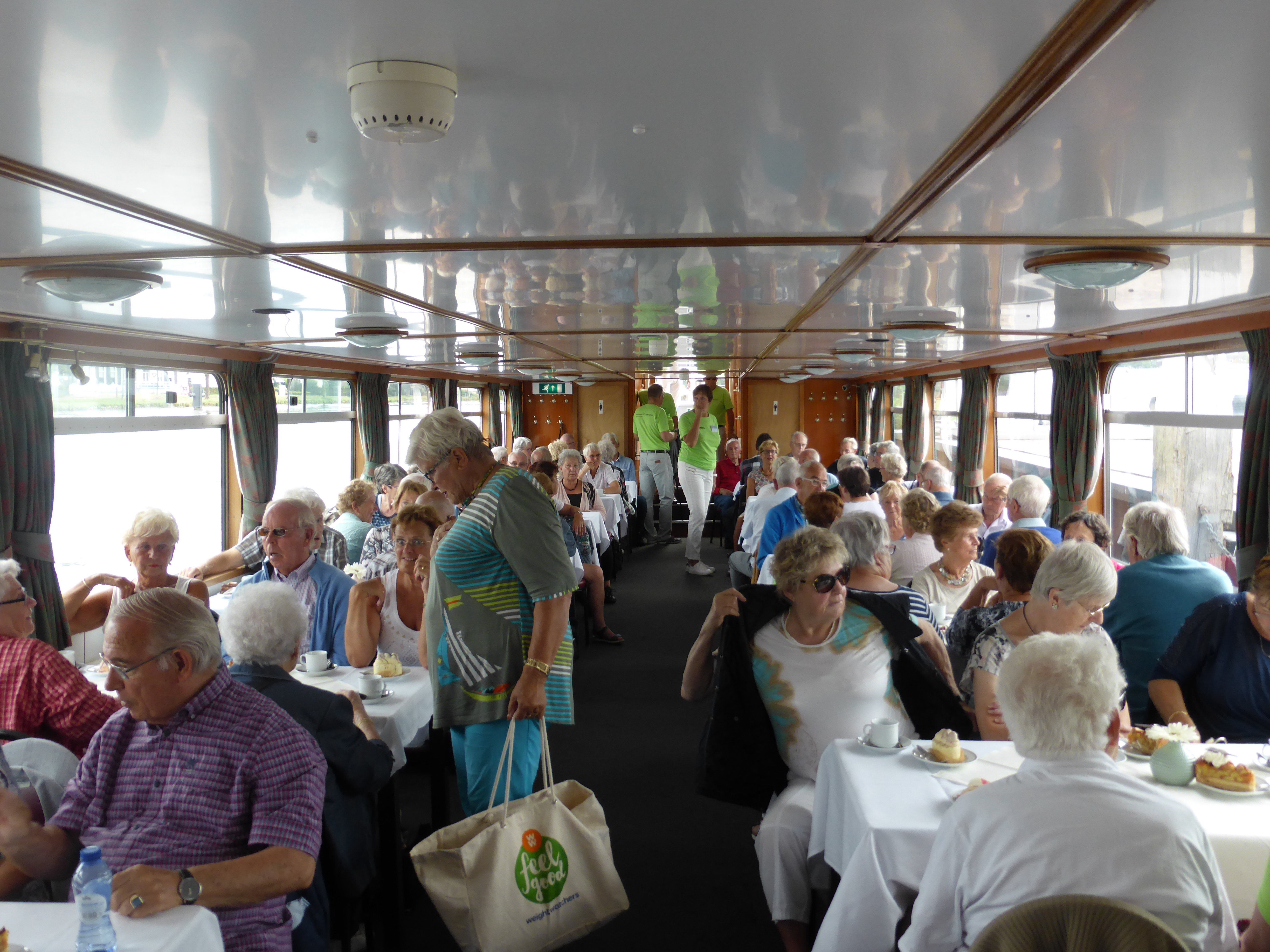 Verwelkomt met koffie en gebak was het ijs snel gebroken en zat iedereen met elkaar te praten, wat ook de bedoeling was van deze vaartocht.